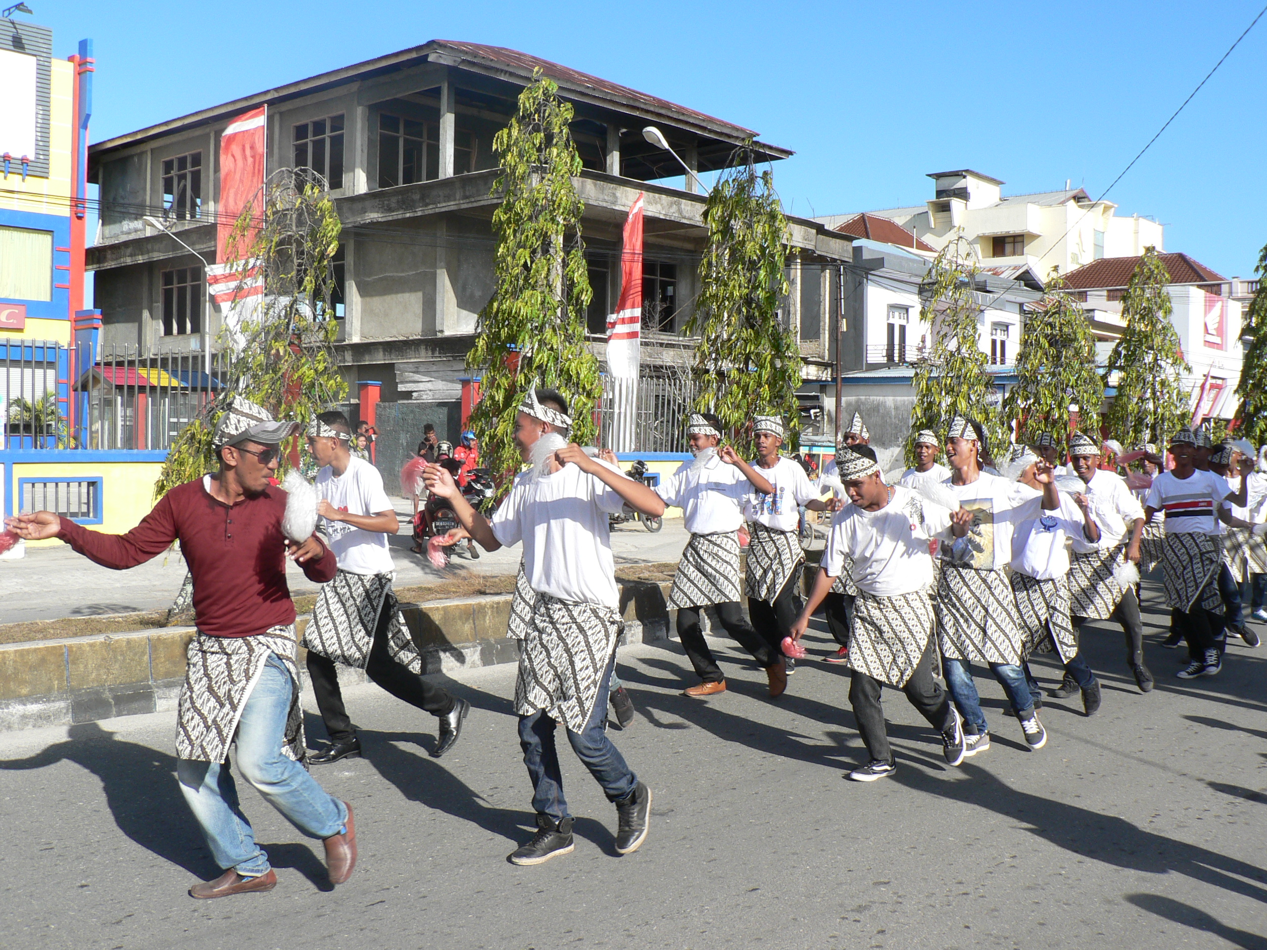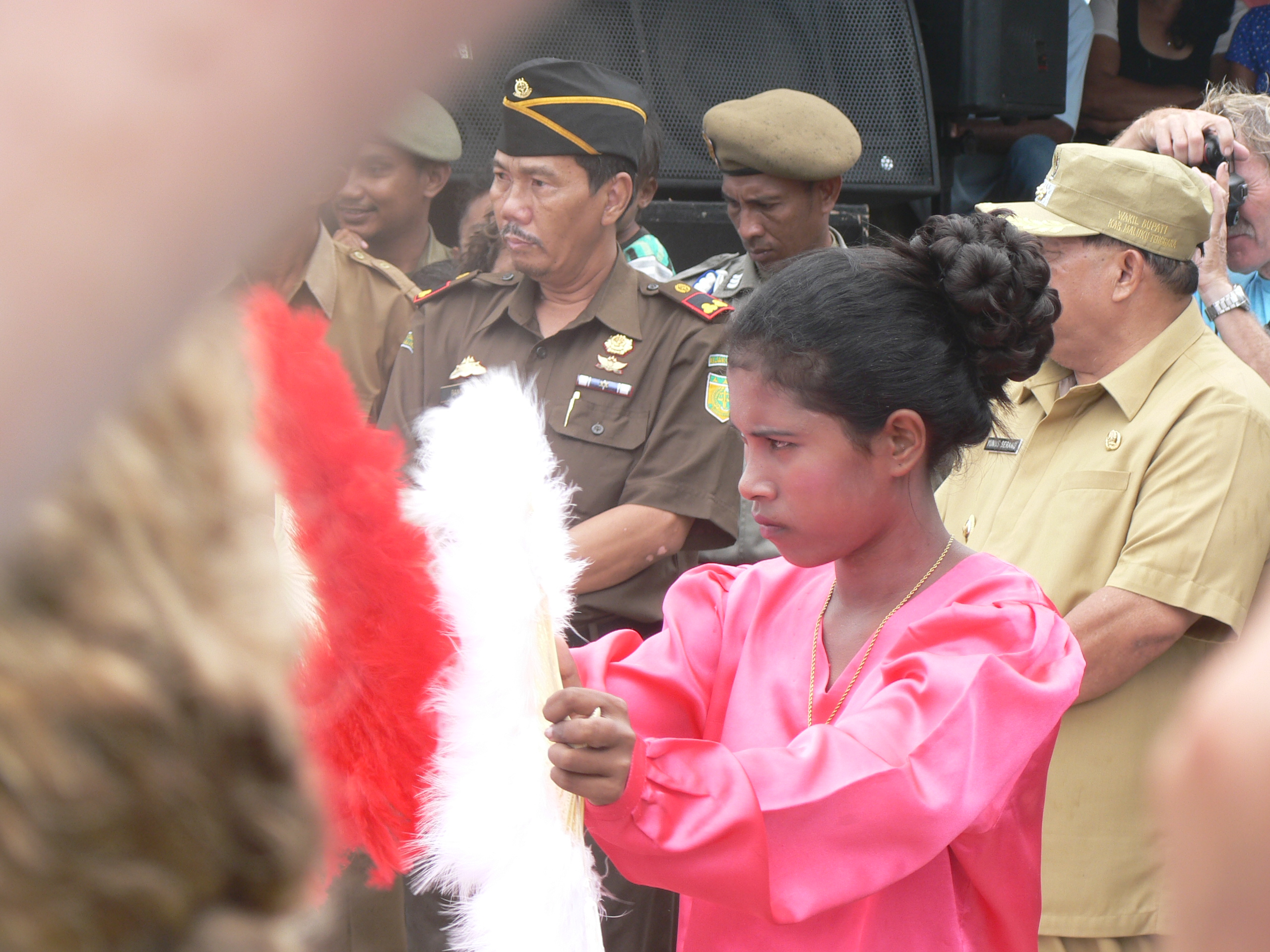 The next afternoon, we piled onto buses to go to Langgur for more traditional dancing, then a parade around the town in which we were the participants – this was a very long walk on a fairly warm afternoon. Lots of waving, smiling, being touched, and photographed, accompanied by very loud music.