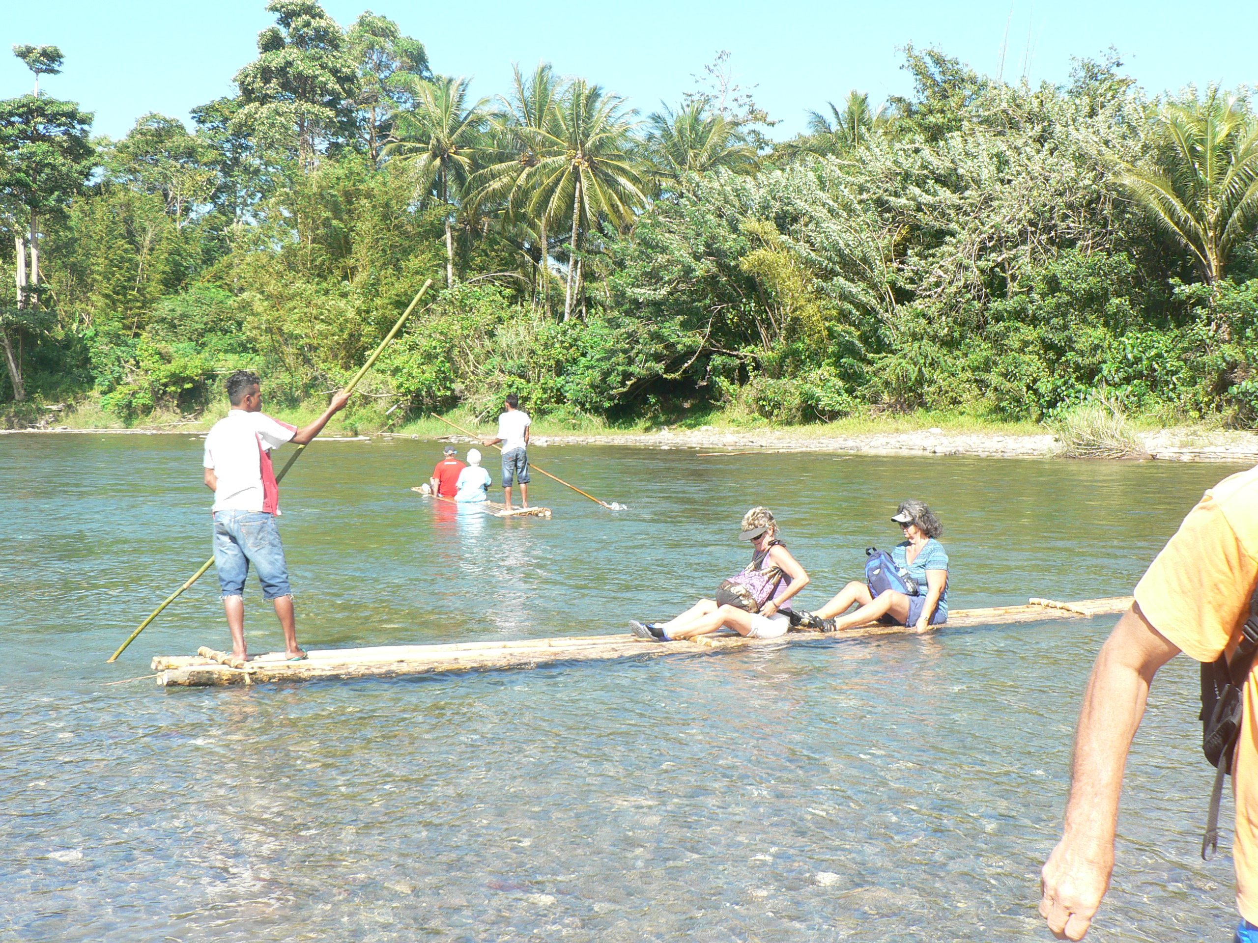 Thursday we were taken in buses to a river nearby and went across the river on traditional bamboo rafts, then walked a couple of kms through the bush (jungle) to reach a village. We were ceremoniously led into the village by locals playing traditional instruments (drums and pipes/whistles) where there was more dancing and a welcome speech (all performed in the streets filled with locals which made it very hard to actually see what was happening).