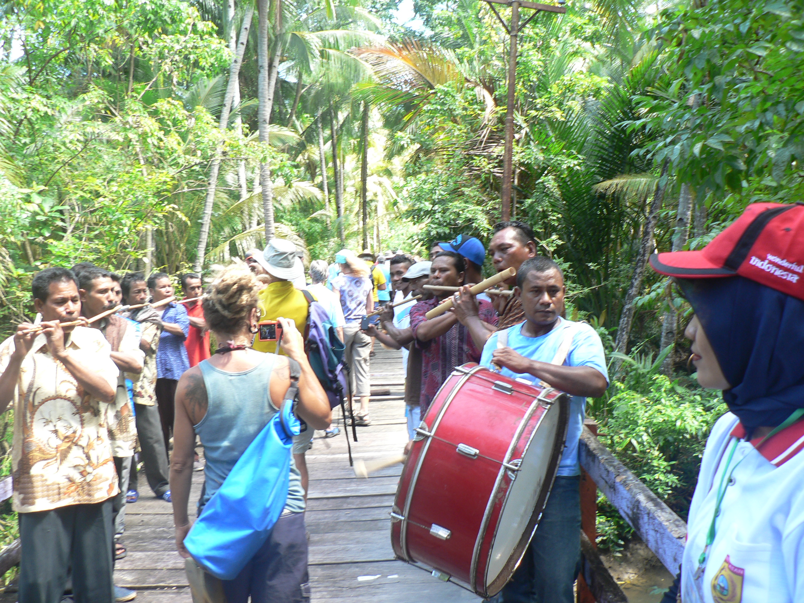 Then dinner at the harbour with the Regent – sort of equivalent to the Mayor. Dinner was yum (at last- food I felt safe to eat), and then after some short speeches the music was on again. This time the Regent sang for us- and blow me down if he didn’t sing a pretty good rendition of the Frank Sinatra song “I did it my way”. We couldn’t believe it- it was completely surreal to be in an Indonesian island community that had never had western visitors and for the Regent to be entertaining us by singing a song like that! What a surprising way to finish off a very surprising visit.