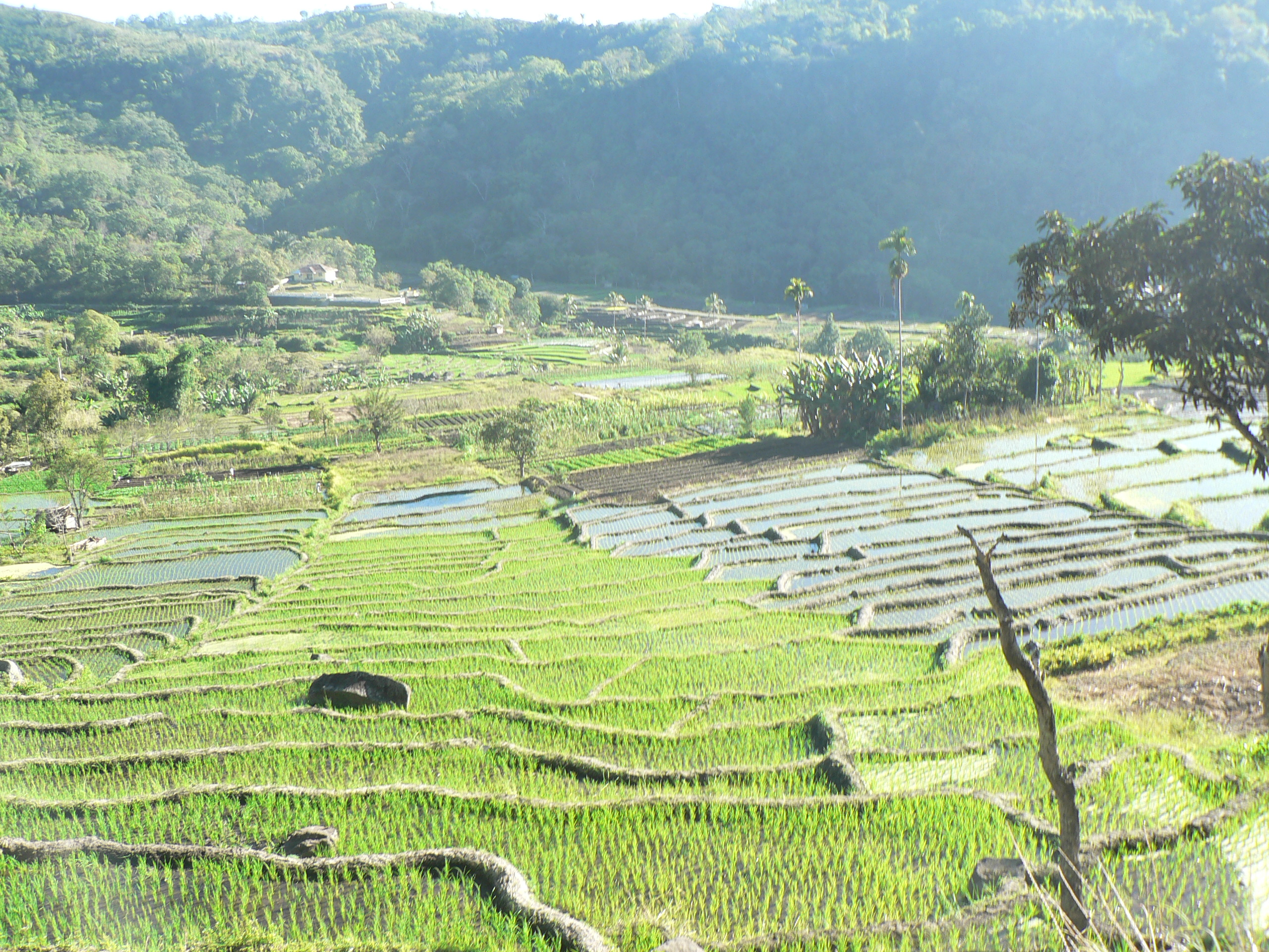 We stopped for lunch at an unremarkable “restaurant”. Just as an aside, another group from the rally did the trip on the same two days and the place where they stopped for lunch had to go and kill the chicken, pluck and gut it before they could prepare the lunch! We arrived at our accommodation at Moni in the late afternoon, in time to explore the village a bit before an early dinner. The views we had along the drive up the mountain were spectacular, and the forest was lush, but by goodness we had some close shaves in which it seemed our lives were at risk. The mountain road carries a lot of traffic, including trucks of various sizes, and Indonesian drivers think nothing of tailgating, passing on a curve (tooting as they go to warn others coming the other way), and driving on the wrong side of the road.