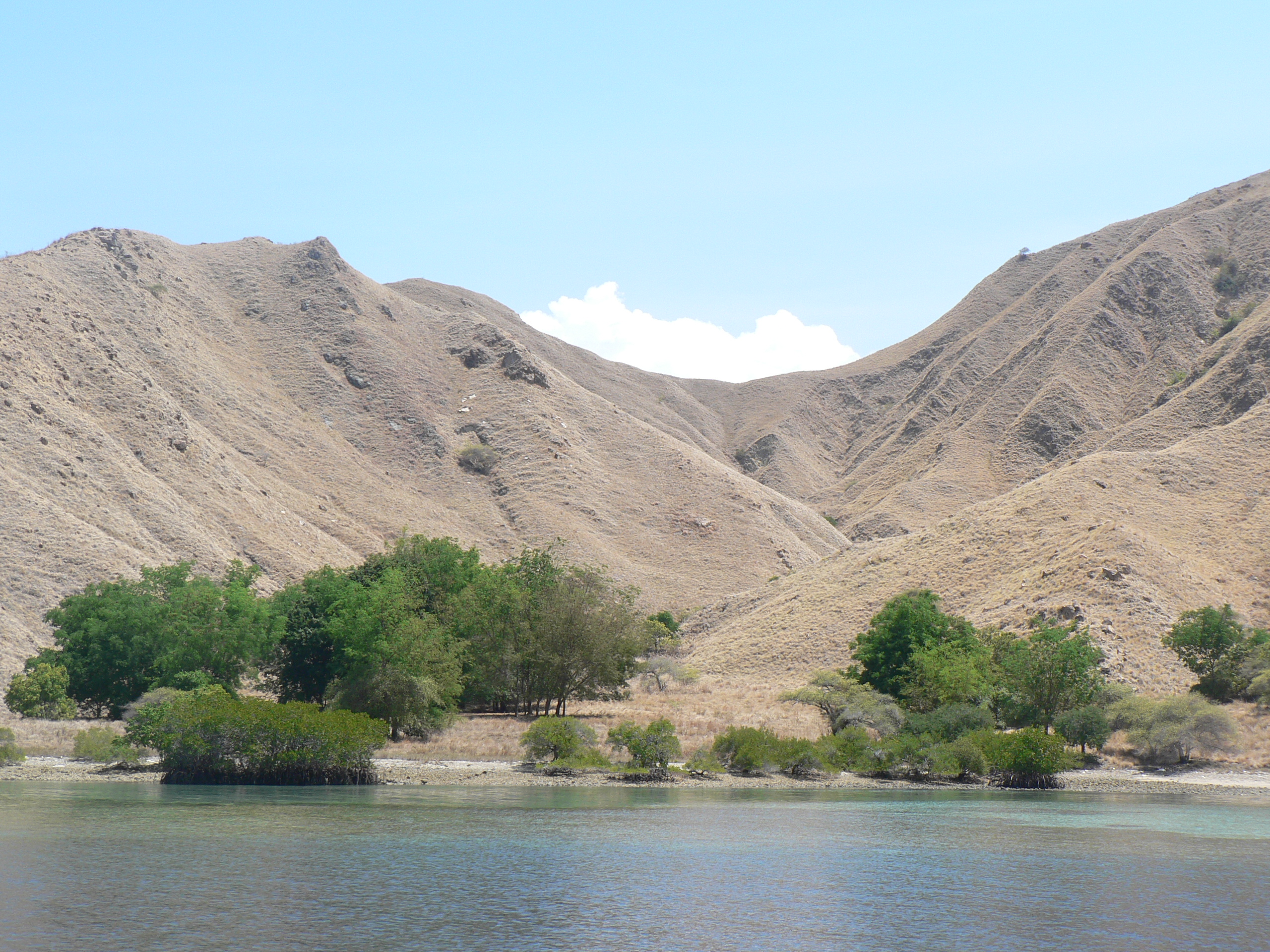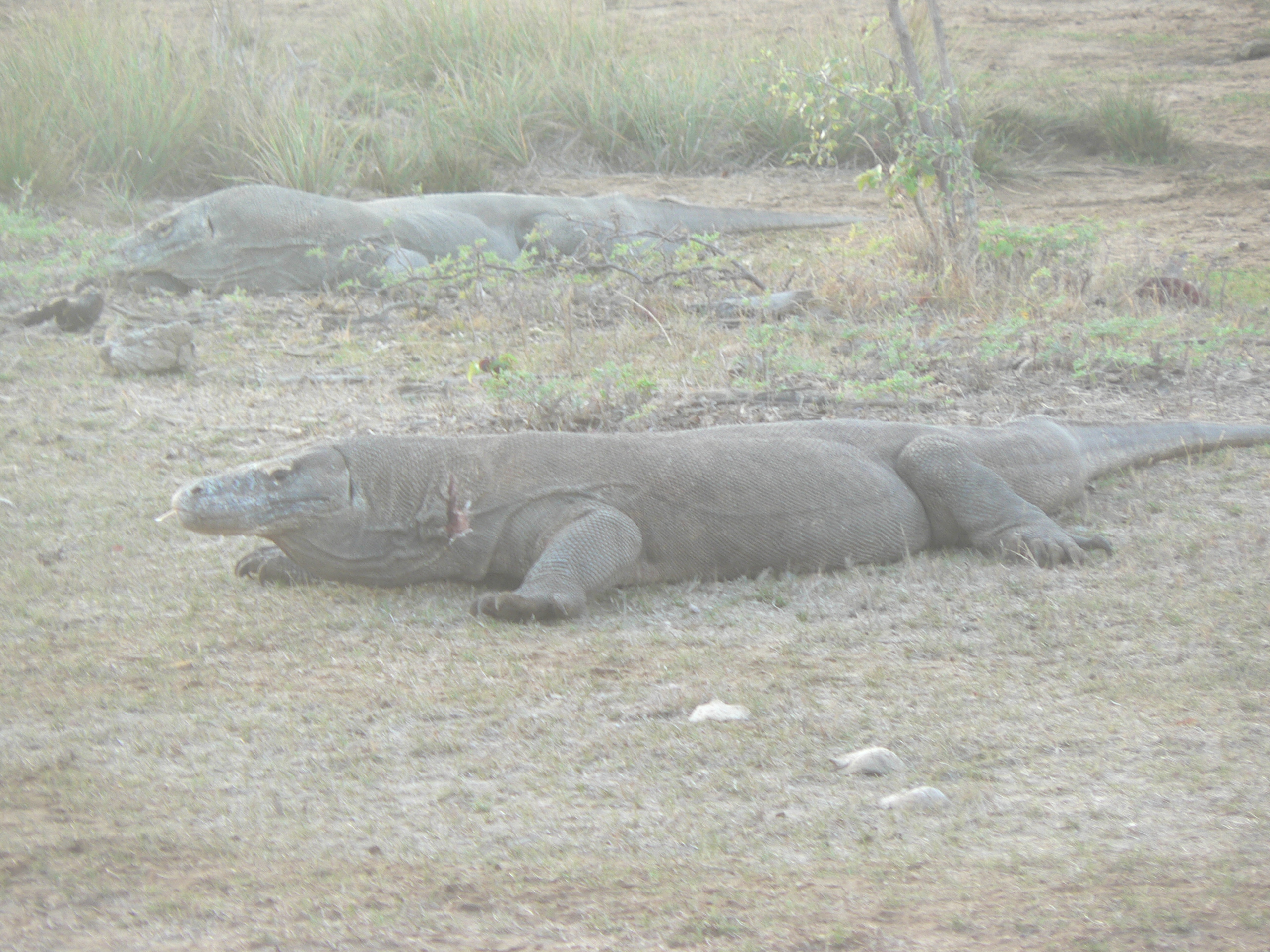 The second place was Komodo National Marine Park in the islands off the very western end of Flores. What a treat this area turned out to be. Famous for the Komodo dragon, it also has some of the best snorkelling and diving sites in Indonesia and because it is a national park, there has been very little damage to the reef from bombing for fish. We did our provisioning as quickly as possible in Labuan Bajo (very dirty town and harbour) and made our way to Rinca Island, anchoring at dusk in a gorgeous bay. At 6am the next morning we took the short dinghy ride to shore and walked up to the ranger’s station to organise our guided walk to see the dragons. We didn’t need to go far, as there were quite a few large dragons hanging around the huts where the guides stay. We also saw several more on our walk, one of which walked for a fair way along the path just ahead of us. It is recommended (in fact I think it is almost compulsory) to take the walk with a guide as the dragons can be quite aggressive. The guides all carry very long forked sticks which apparently provide protection if any of the dragons get stroppy. We also saw monkeys and deer along the way- dragon food it seems. The dragons were every bit as gross as I had anticipated, but it was interesting to see them in their natural environment and learn about them from the knowledgeable guide.