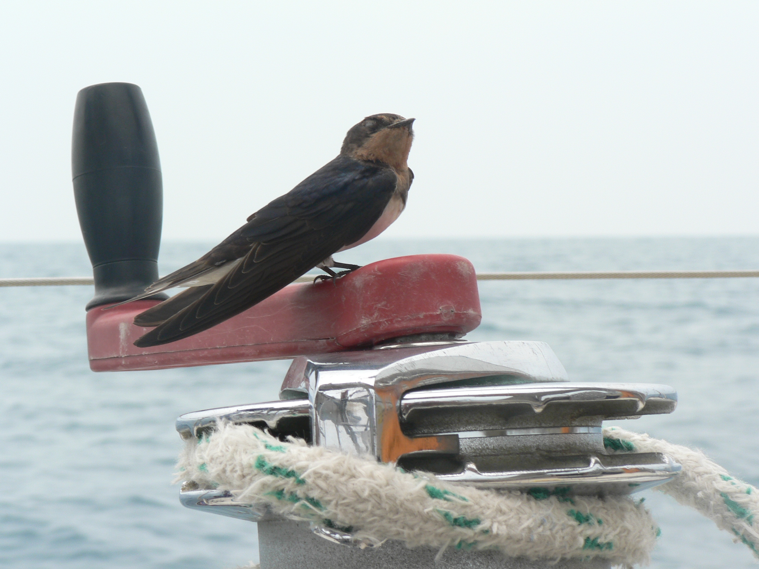 A couple of freeloaders. We also had another larger bird that spent the night lodged up in our spreaders