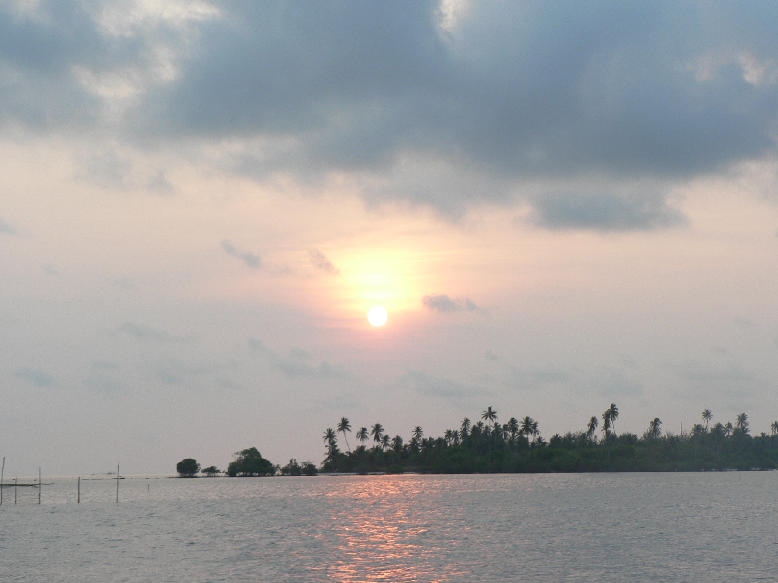 The equator crossing, as one might expect, was remarkable only in that we carried on with some traditional nonsense when a person sails across it for the first time. We only just managed to actually sail across it, turning the engine off, putting the sails up, and using the boat’s momentum to get us across. We had a nip (probably more than a nip actually) of brandy (I know, it is meant to be rum, but we did not have the foresight to keep some rum for this purpose), and ran around the perimeter of the boat naked. Phil splashed my face with equatorial water, sparing me from the dunking that I should have had. However, the wind gods did not allow us much time to bask in our achievement as there an impending squall ahead, so we were back on the job quick smart, dropping the sails and battening down the hatches. We did not quite make it to Benan Island that day so spent the night in a convenient anchorage nearby and completed the last 10 miles the next morning.