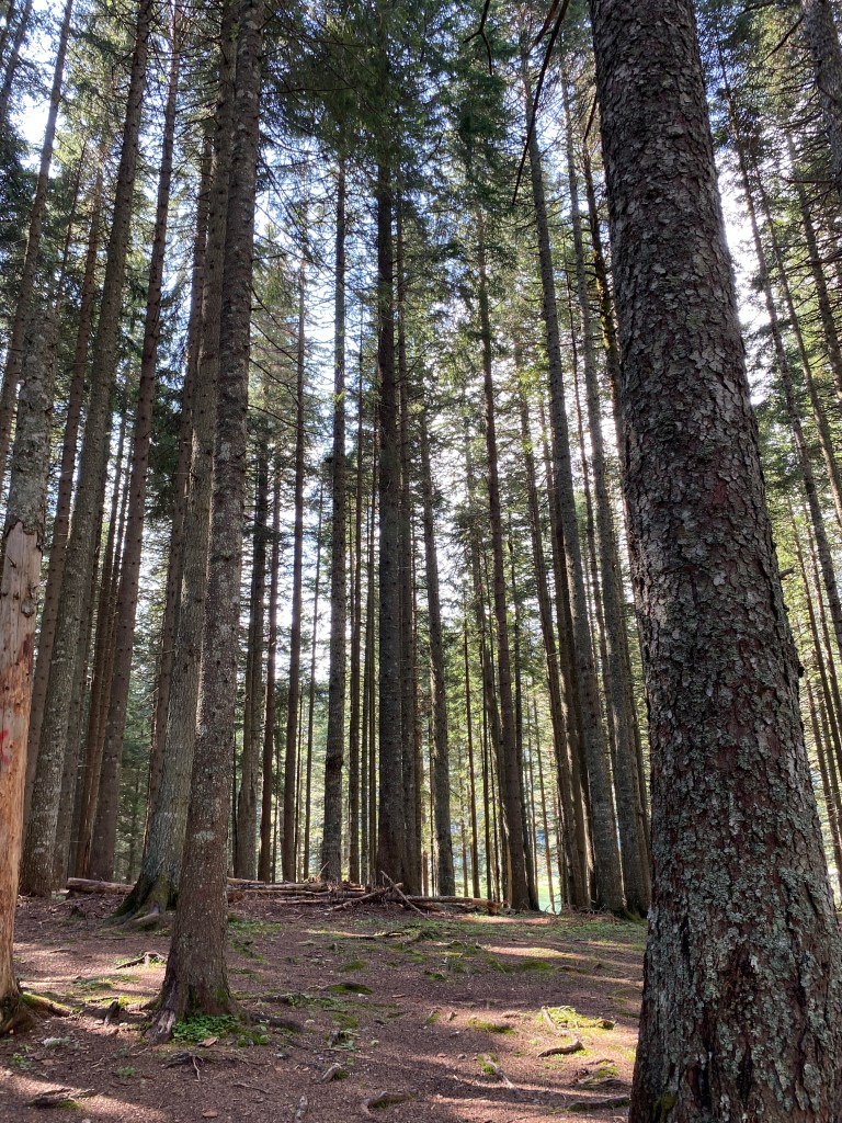 We thought that we would likely do the Durmitor ring road in one day, after all it is only 76 kilometres around. How wrong we were! We started off with a walk around the Black Eye Lake, reputed to be the best of the many glacial lakes in the area. It is actually two lakes joined by a narrow piece of water, but this is only apparent in summer when the water is low enough. At other times, it appears as one lake. The walk around the lake was just lovely- gorgeous views no matter where you looked. The weather was looking a bit dim, and we heard frequent thunder – it really was like the mountains were talking to us.