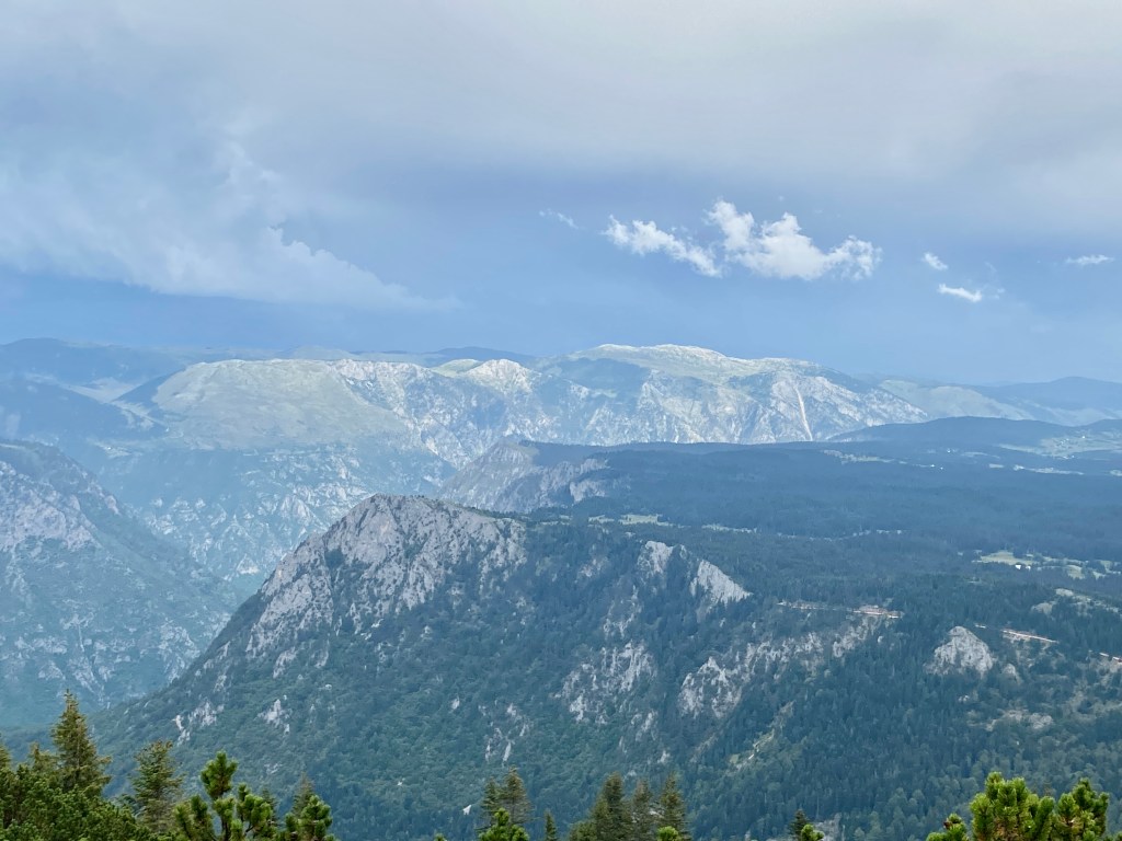 Durmitor National Park in northern Montenegro is the country’s largest protected area and is a stunning landscape created by glaciers, numerous rivers and underground streams. It has 50 peaks that are higher than 2,000 metres above sea level, and numerous glacial lakes, known as “mountain eyes”. The area is comprised of limestone and covered in European Black Pine and many other plant species. We (Phil and I, and Adrian and Marianna) decided on a visit to this park as the focus for our Montenegrin land trip.