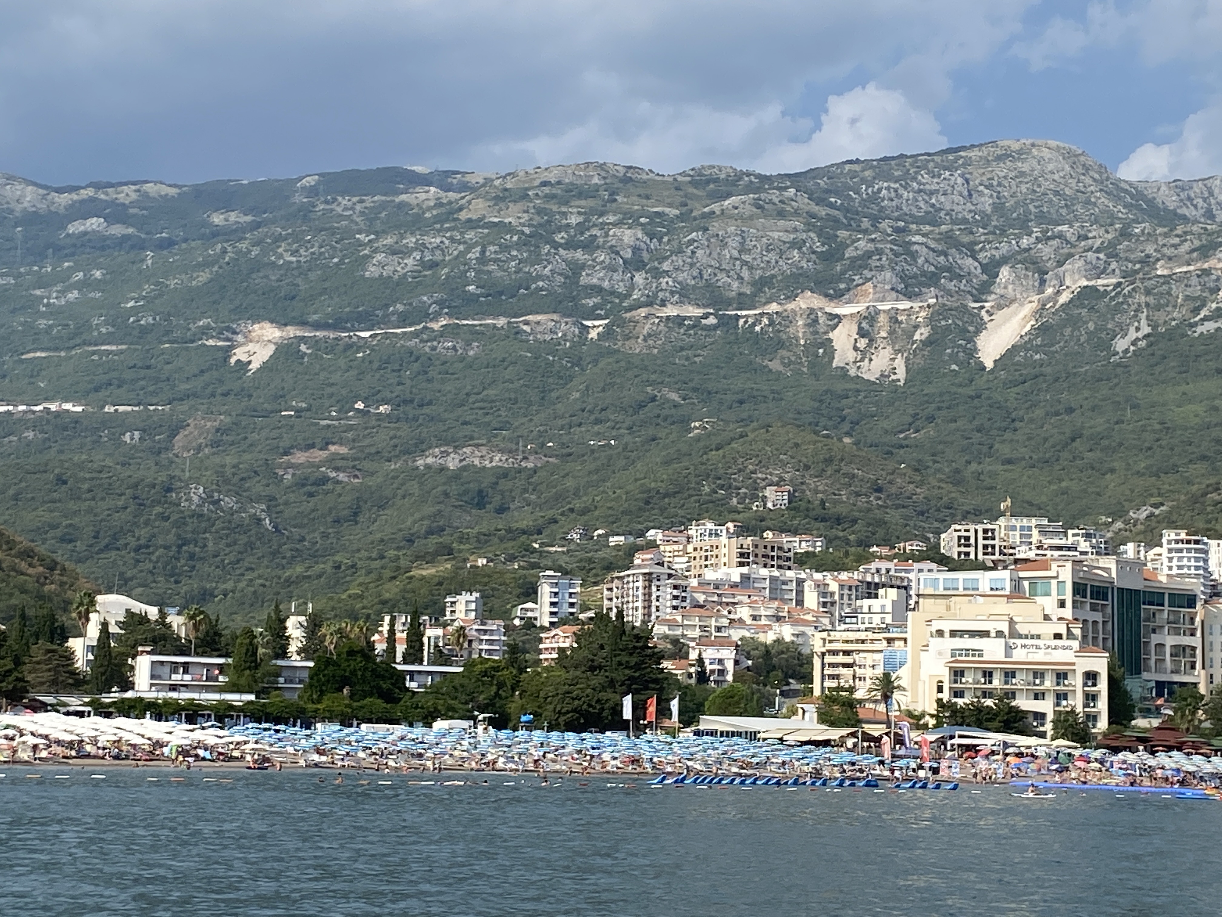 Not long after arriving in Montenegro, we found ourselves in Budva and felt that this was a secure anchorage for leaving the boats, and with an upcoming period of relatively calm weather we arranged a hire car – a very straight forward process compared with our experience in Durres, Albania. While the big boats were secure, we had to find a solution for leaving a dinghy ashore while we were away. The beach at Budva is literally packed with sun lounges and umbrellas and almost all of the shoreline is roped off for swimming making landing the dinghy ashore almost impossible.
