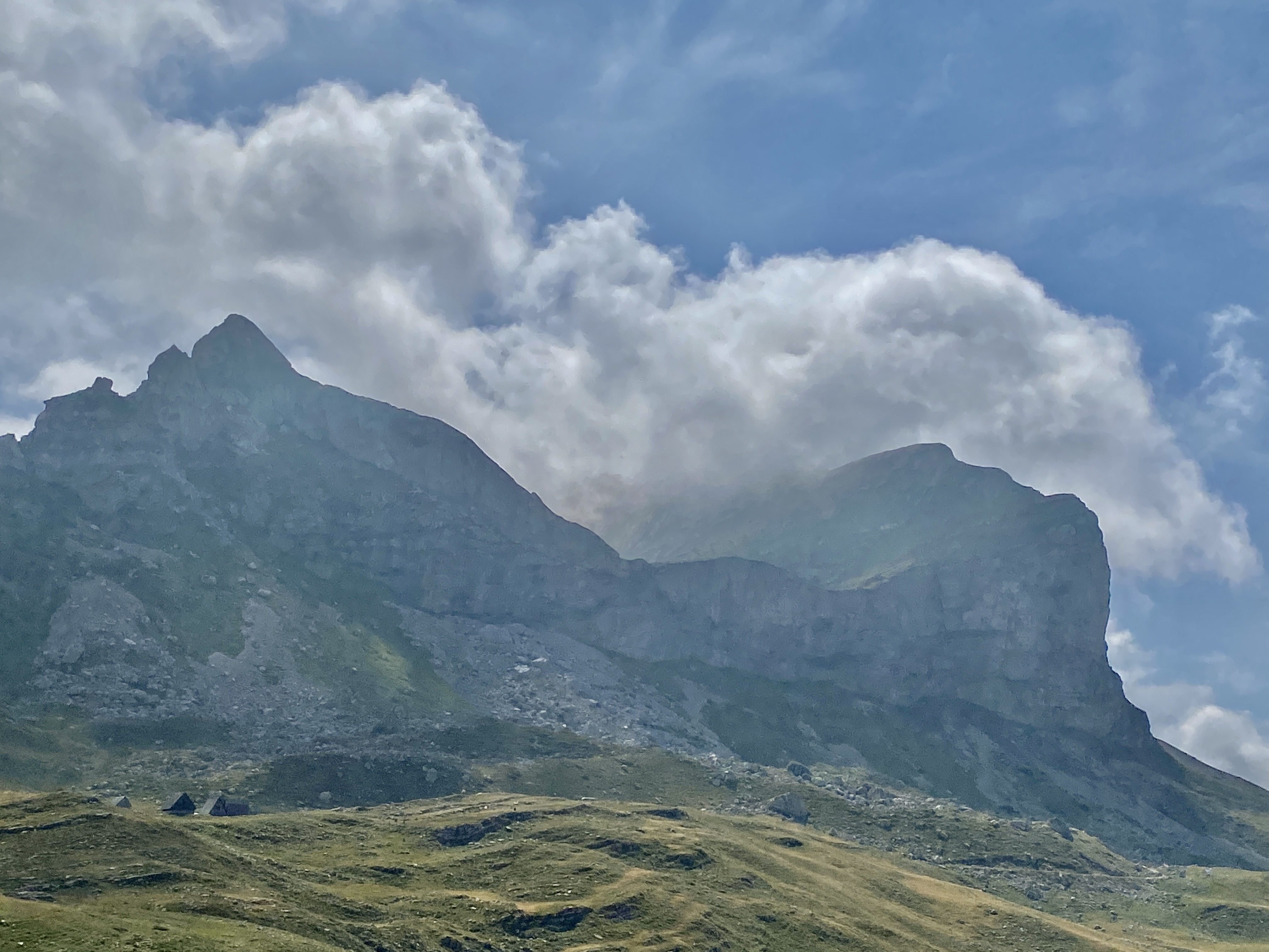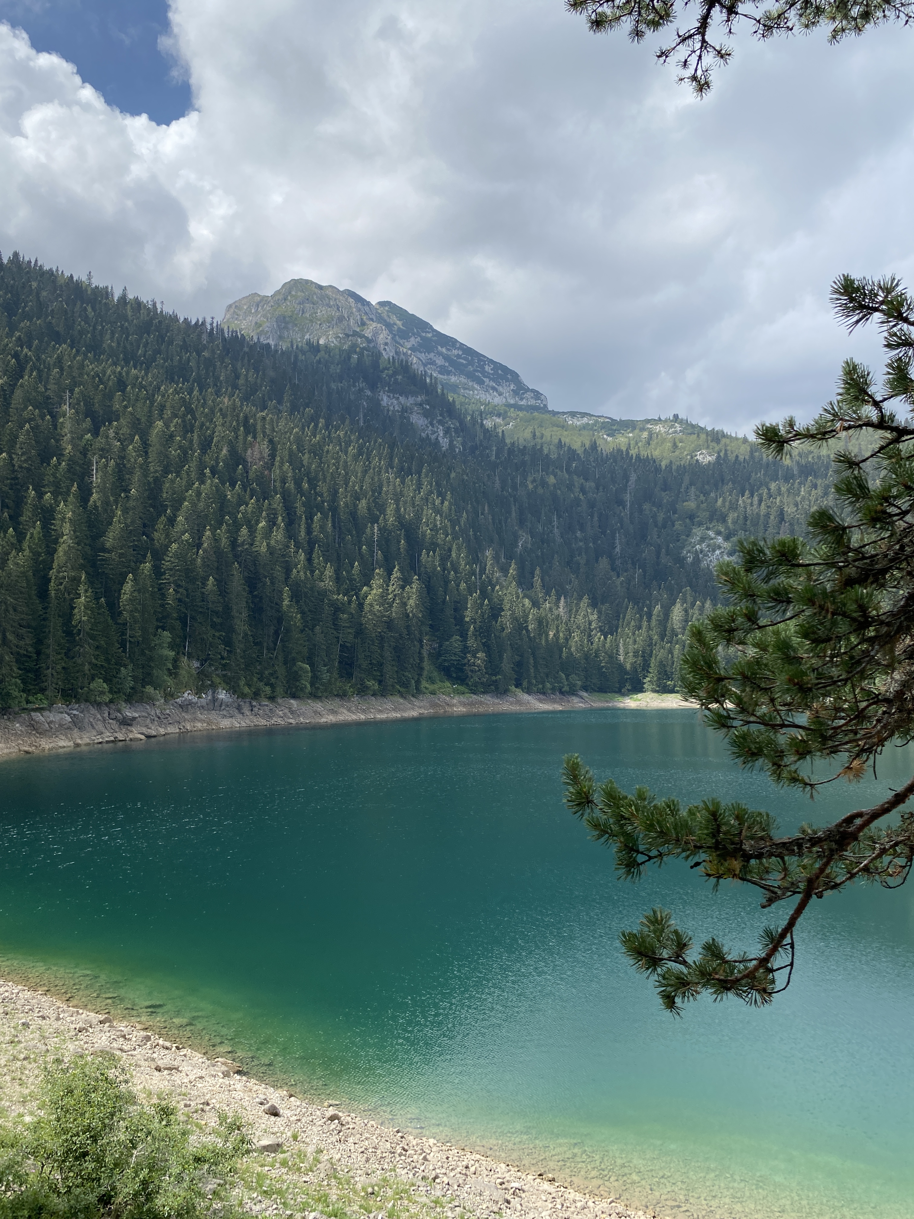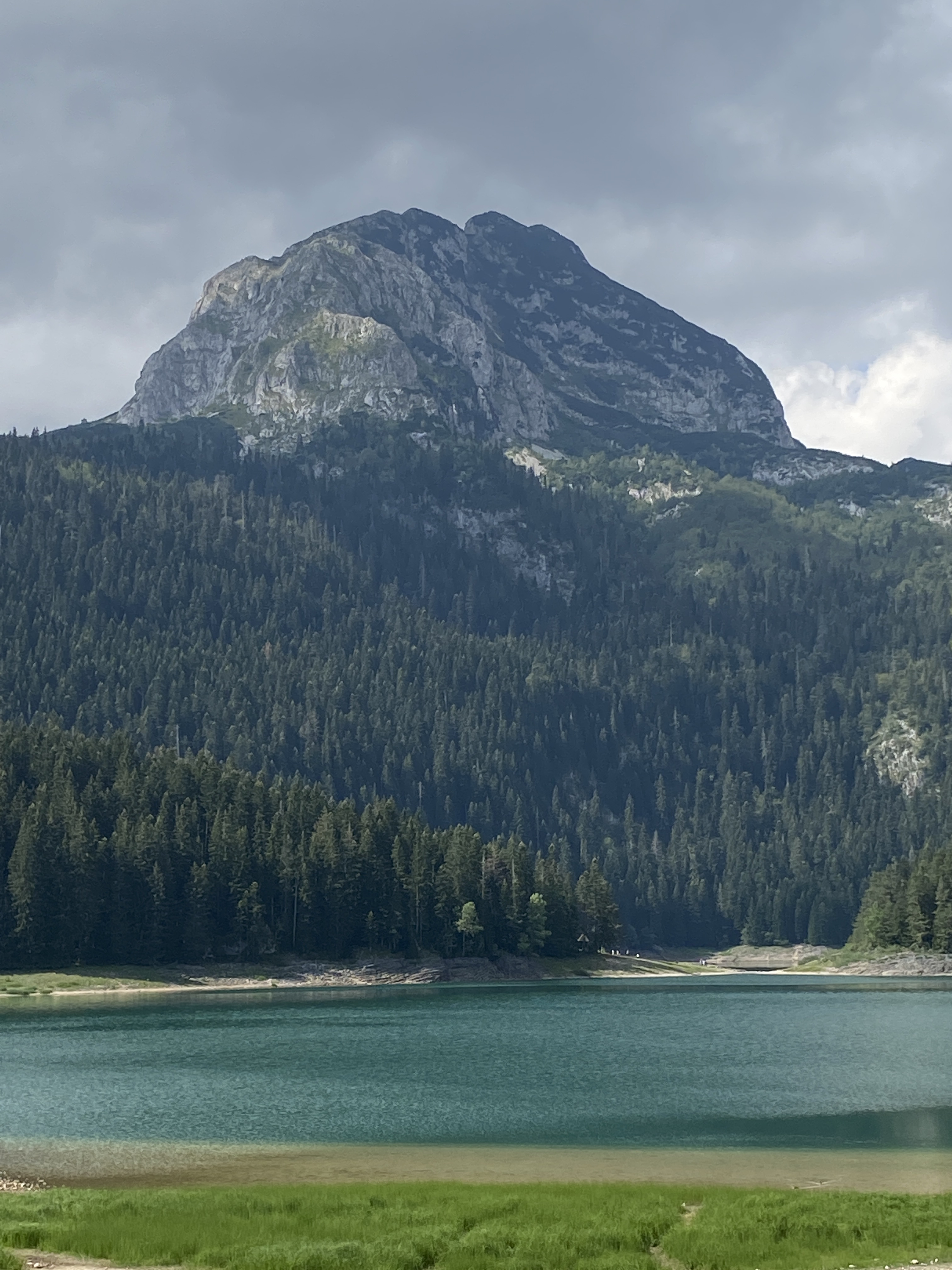 We thought that we would likely do the Durmitor ring road in one day, after all it is only 76 kilometres around. How wrong we were! We started off with a walk around the Black Eye Lake, reputed to be the best of the many glacial lakes in the area. It is actually two lakes joined by a narrow piece of water, but this is only apparent in summer when the water is low enough. At other times, it appears as one lake. The walk around the lake was just lovely- gorgeous views no matter where you looked. The weather was looking a bit dim, and we heard frequent thunder – it really was like the mountains were talking to us.