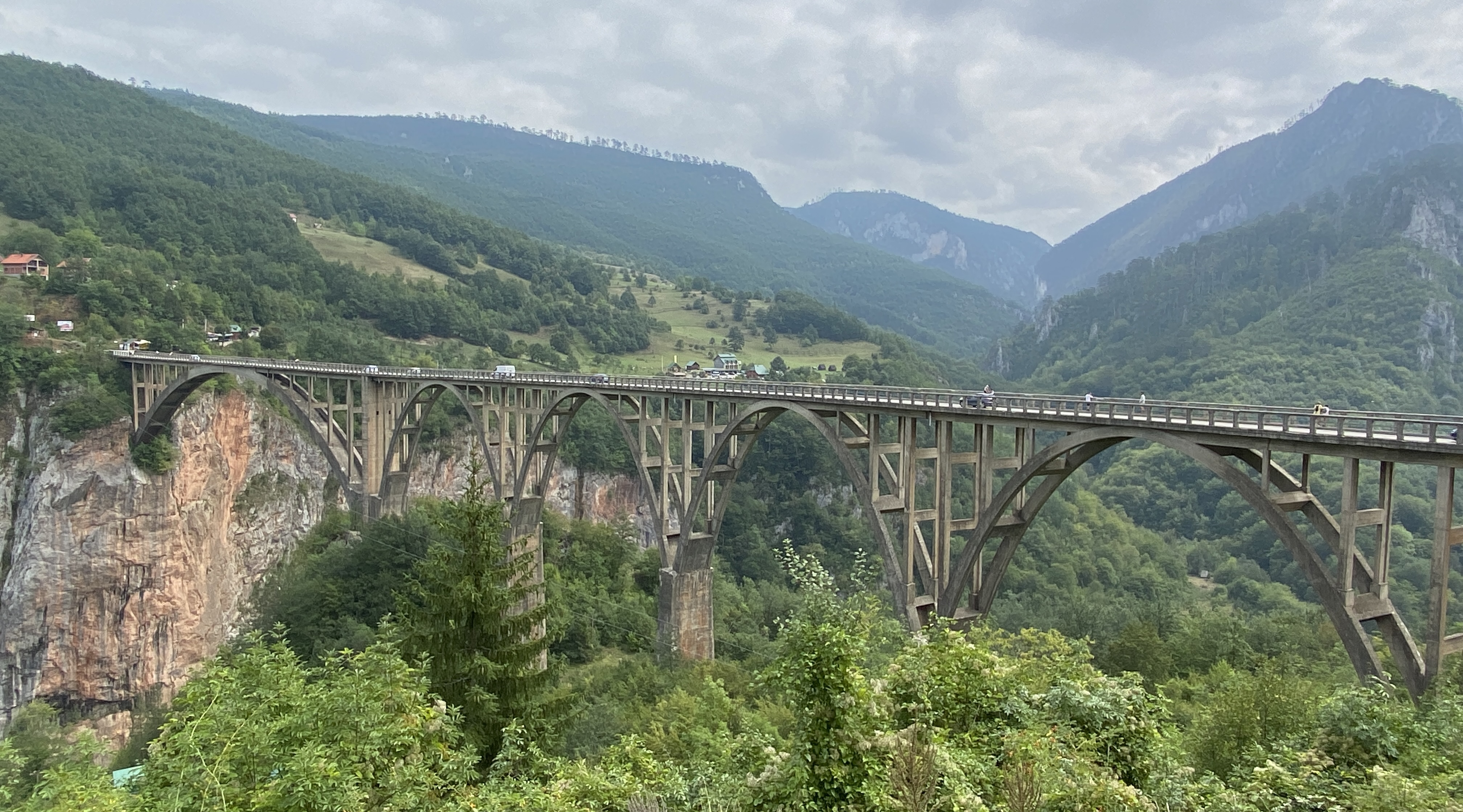 By lunchtime we were at Tara Canyon which at 1.3 km deep is the deepest gorge in Europe. The bridge across this canyon was completed just prior to WWII. In 1942, a large number of Italian and German troops were in nearby Zabeljak and the Montenegrin partisans ordered the bridge to be blown up. One of the engineers who built the bridge was selected to plant the bomb that actually did the job. He was ultimately captured by the occupying troops and executed on the remains of the bridge. The bridge was re-built in 1946.
