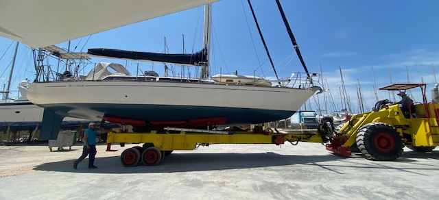 Once back on board in the yard, we had some significant jobs to tick off. The standing rigging (the bits of wire that hold the mast up) had been replaced while we were away, and we had to reconnect all the electrical wiring at the bottom of the mast and feed it through an impossibly small tube to the inside of the boat. Two new roller furlers (gadgets that roll up the two headsails) had also been installed. All the sails had to be put back on, and the sheets re-fitted. Not the sheets on the bed, the sheets for the sails – the ropes that pull them in and out. The anchor and anchor chain had been re-galvanised in our absence and so needed to be put back on the boat. We had some new lithium batteries delivered to the yard while we were away, and these needed to be installed, along with a new inverter. The new batteries would significantly increase our amp hours and the new inverter meant that we could now run a few small electrical appliances regularly, like a jug and toaster. In addition, we had 400 smaller jobs on the list (not really!). The boat jobs tested our endurance and patience, and although we knew we would get to the end of that job list, it seemed a long way off. We have prepared the boat to be re-launched a number of times, and yet every time we are in the thick of it, it’s hard to be comforted by the knowledge that launch day will come.