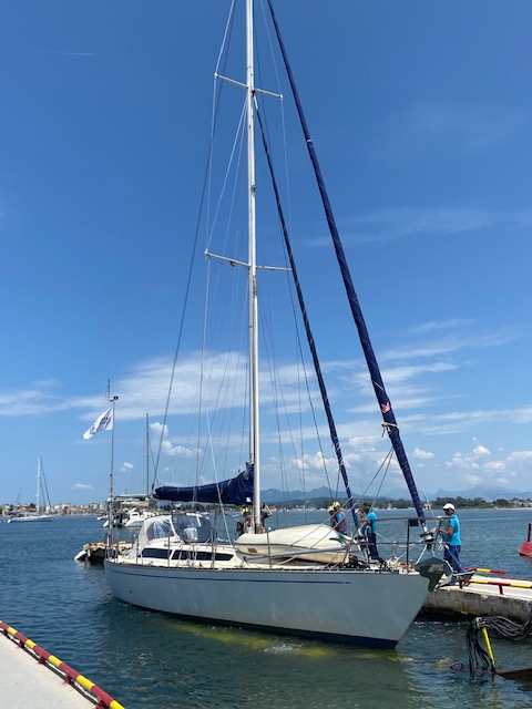 We flew out of Melbourne seven weeks to the day after Phil’s surgery, with some trepidation about the journey and the work which awaited us at the boat. Phil was doing well, but his bladder had not fully recovered, he was meant to be only gradually increasing the loads he was lifting, and he was not yet back to full general fitness. We were rescued by our friends Adrian and Marianna from Anthem, who had specifically come to Preveza to help us. They picked us up from the bus in Preveza and whisked us back to their boat where we slept and were cared for while we got Paseafique fit for habitation. They also helped with a few of the heavy jobs.