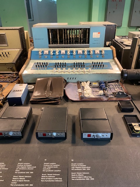 We did go to Tirana, the capital, on a shopping expedition for a couple of days though. With the increased availability of power on the boat, we wanted to buy a portable induction cooktop thereby decreasing the need for gas. We had thought we found one in Saranda, but it was not quite right and so we figured that there would be more choice in Tirana – wrong! In fact, there were no portable induction cooktops to be had. We did however, visit the “House of Leaves”, the Central Directorate of the Secret Service of Albania from 1944 to 1991. It is now the Museum of Secret Surveillance which gave us yet another interesting insight into the Albanian Communist era.