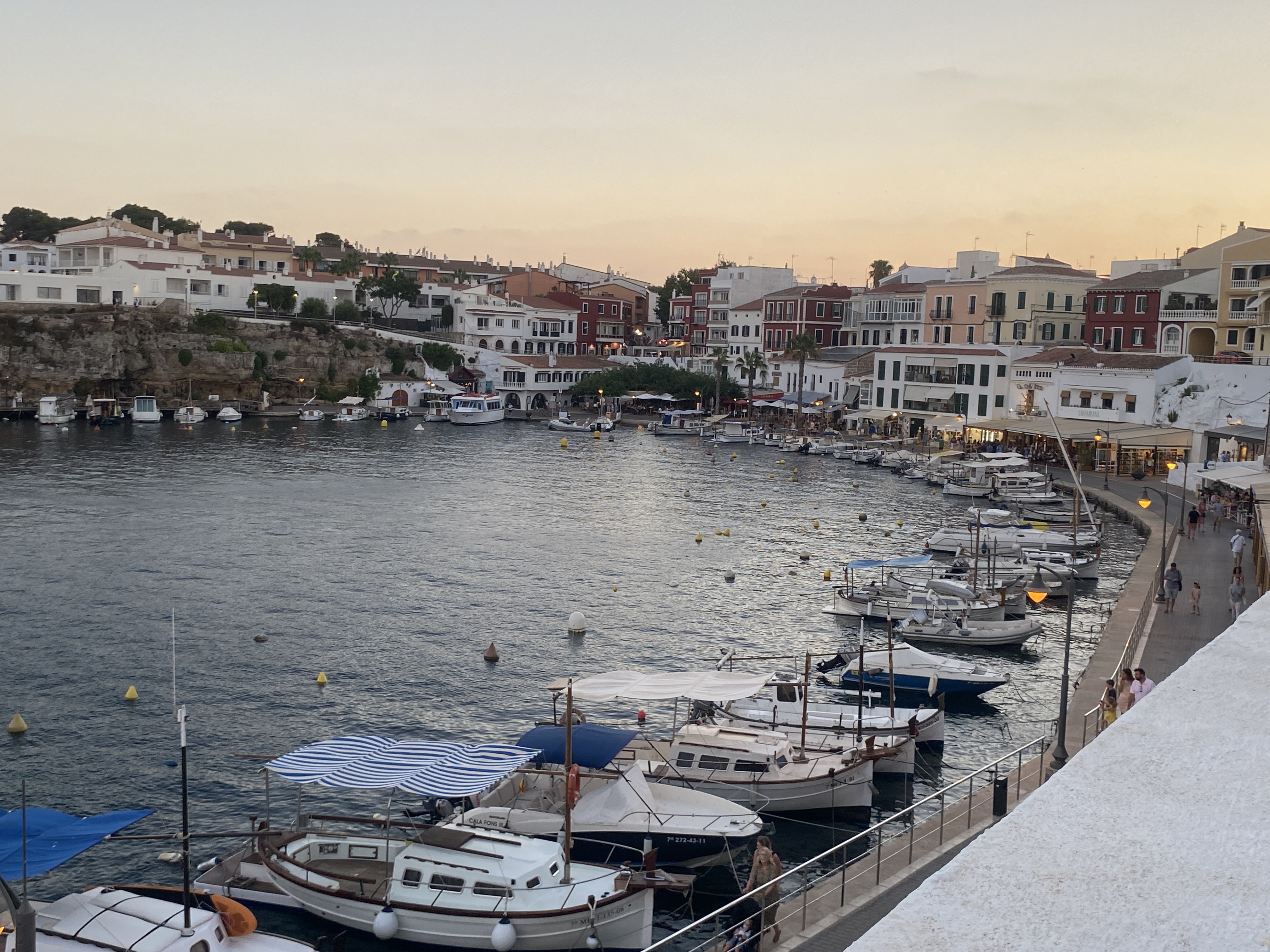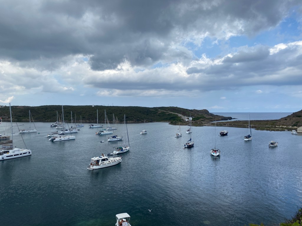 After our passage from Sardinia, our first landfall in the Balearics was at Cala Teulera, on the island of Minorca. Now this was a crowded anchorage squeezed in between the end of a peninsula on one side and a close lying island on the other. At first pass, we didn’t think we were going to find a spot to anchor. It’s a bit intimidating when you come into a close anchorage like this with everyone watching but we managed to get ourselves settled. Then of course, we in turn were able to enjoy the evening ritual of watching the new boats come in looking for a spot. There is no doubt that there could be chaos in this anchorage with strong and shifting winds making boats swing and drag. Although it wasn’t overly windy while we were there, Phil helped three boats that had dragged over five days. Paseafique held firm though. Cala Teulera is a popular spot for day trippers and unlike many other places, the day boats here pottered in slowly (even the speed boats) and simply enjoyed themselves swimming, chatting, fishing, eating before heading off home at sunset. It was close enough to the main town, Mahon, for us to take the dinghy to explore.