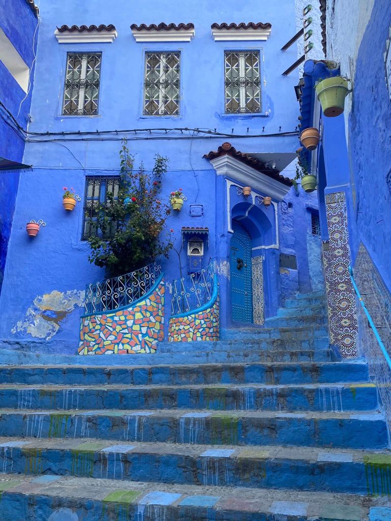 Chefchouen is also known as the Blue City and yes it’s because it’s pretty much all painted blue. No-one really knows the reason but there are a few theories. One is that the early inhabitants painted it blue to keep the mosquitoes away. Another is that the Jewish population painted their area blue -one of the sacred colours, and the rest of the population followed suit. A more cynical theory is that the novelty of a monochromatic town attracts the tourists, and that may be indeed why it is kept blue for now. Regardless of the reason, the blue has a calming effect and I really liked the feeling despite the many tourists that crawl the many laneways scouting for the perfect “blue” photo.