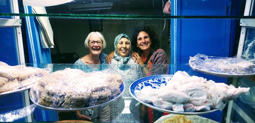 Marianna, Adrian and I had a wonderful interaction one evening when we decided upon returning to our hotel after dinner that we wanted a little sweet something to finish the evening. Luckily we found a little shop selling home made biscuits just near our hotel. The shop was run by a middle-aged woman who was busy making the dough even at that late hour. She didn’t speak a word of English but that didn’t stop her from holding a lengthy one-way conversation with us. It was almost as if she thought if she talked to us enough, we would start to understand her language which was probably an Armazigh dialect, Armazigh being a group of closely related languages spoken by the indigenous Berber people. She recruited a fellow from a near-by shop to help interpret but even that did not make much difference. She had a warm heart and being delighted with our visit, Marianna and I received lots of fleshy hugs. Next morning, Marianna and Adrian were out early for a walk and dropped by to “chat” to her. She generously gave them three small boxes of biscuits for us to share and refused to let them pay anything. She gave us far more than we bought from her but the free biscuits were nothing compared to the delightful interaction we had with her.