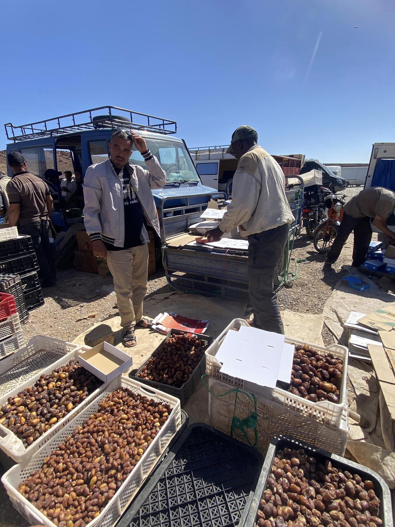 We had told Ahmed that we were interested in buying a bulk quantity of dates to split between us, so he took us to a local date market and helped in finding some quality dates and negotiated a price for us. We bought 13 kgs between the 4 couples and shared some with Ahmed and Nordin, our driver. In addition to dates, Morocco is also rich in fossils. In fact Ahmed’s father made his living as a fossil digger. We visited a fossil “factory” where the fossils are cleaned up and turned into some very creative pieces. The residue is given to the local boys who then chip away at it to find smaller fossils which they then sell to tourists on the road sides to supplement their family’s income.