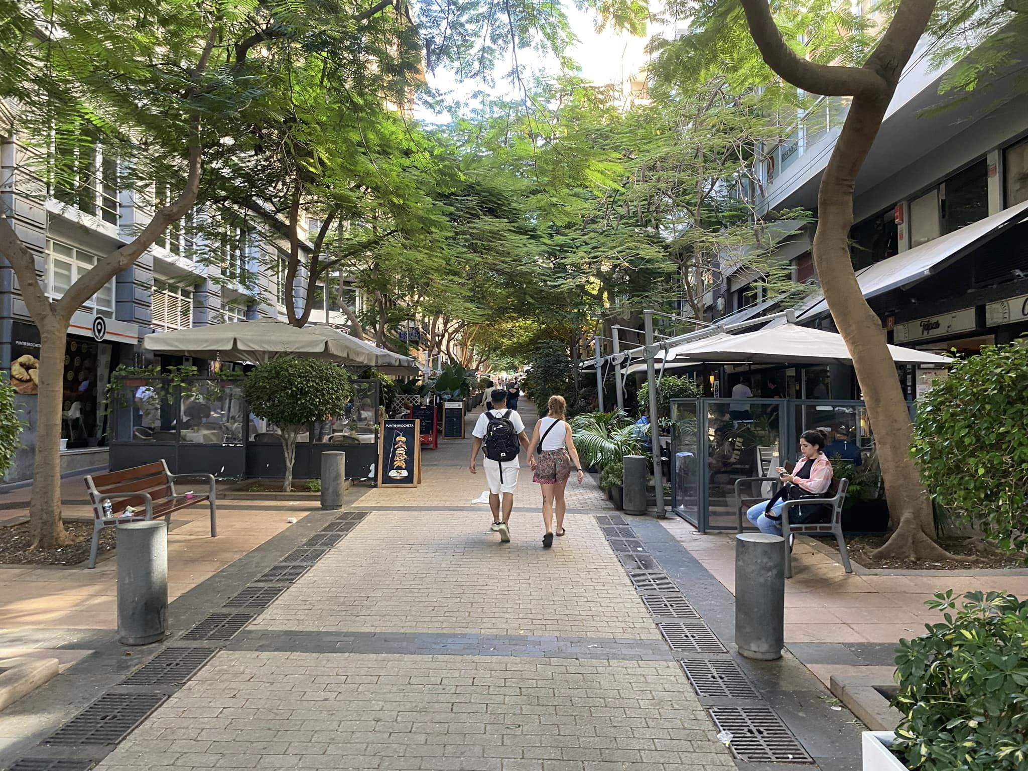 We loved the atmosphere in Santa Cruz- there are lots of pedestrian streets crowded with tables and chairs for outdoor eating and drinking, lots of trees, some nice sculpture, and happy vibrant people.