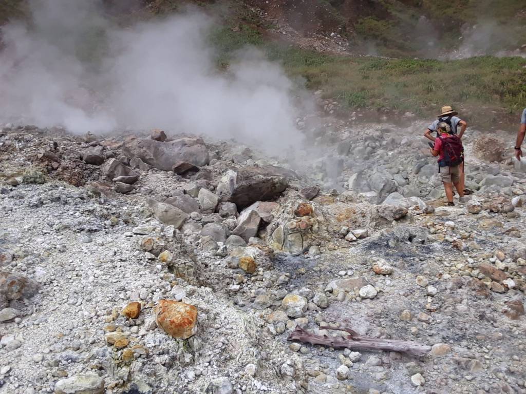 Finally, after three hours of hard yakka, the Boiling Lake appears shrouded in steam which sometimes clears to reveal the bubbling water. If that wasn’t enough, after a lunch break, the three-hour return trip awaits. The exhausted group did manage to find themselves a bar for a beer before returning to the boat.