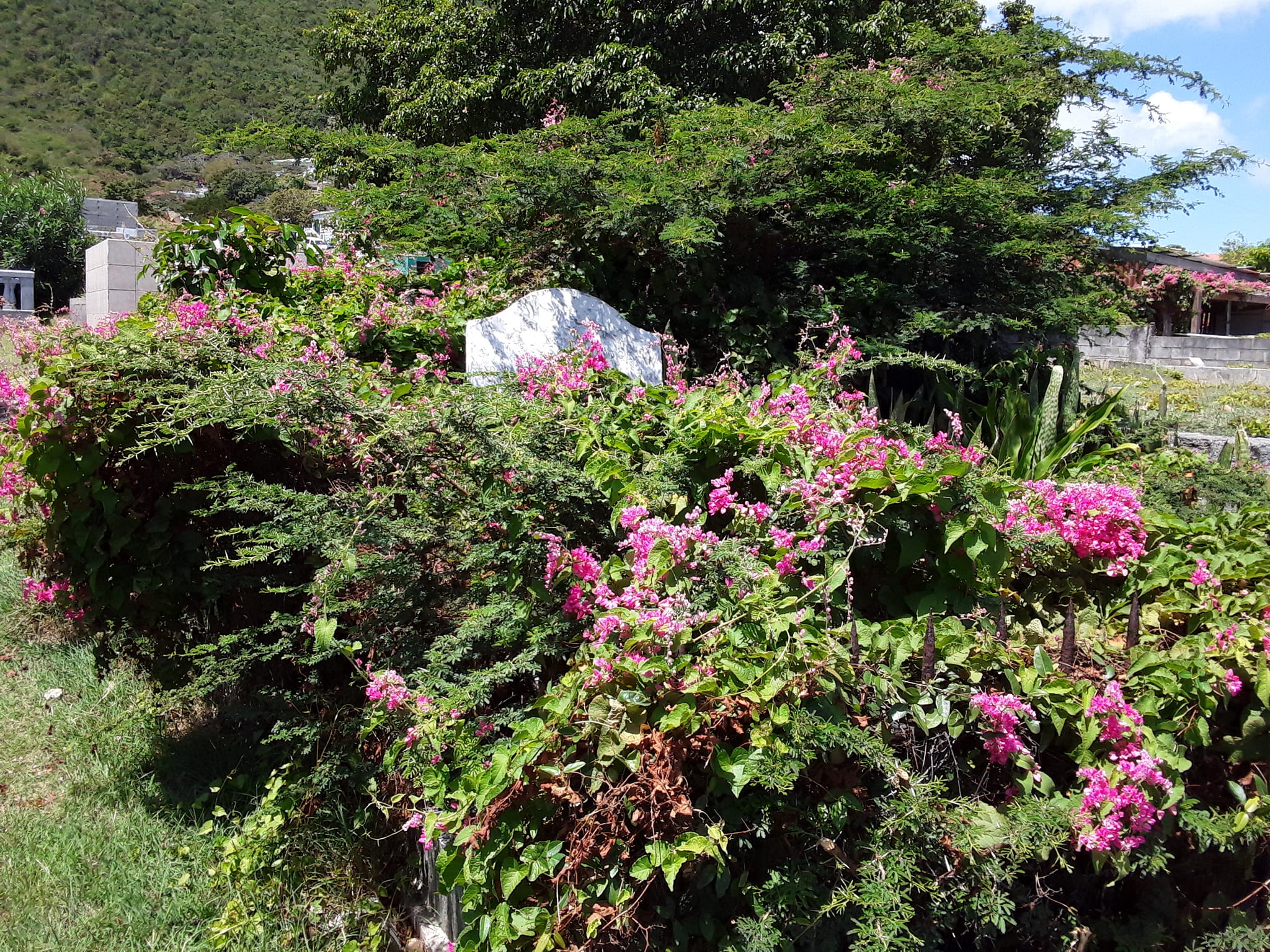 Next stop was the cemetery and here we did indeed find gold – well not real gold, but family history gold. On arrival we found a lovely big tree under which to have our picnic lunch (I know, it’s an unusual spot for a picnic) and then started a methodical search of the graves. Little did we know that right near our picnic spot, buried underneath some very prickly bushes, was a very significant family grave – that of George and Susan Ilidge who were prominent citizens in Sint Marrten and closely involved in the Methodist Church. We were very happy that we had found it.