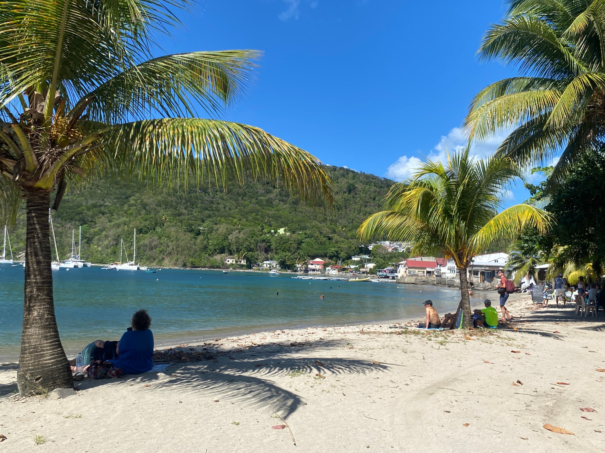 On Dominica we had seen boiling lakes and mud pools, but on Guadualoupe we anchored in Bouillante, a “boiling” bay. Well not quite boiling, but it is fed by a very hot spring. I think the hot spring has always been there, but these days there is a geothermal plant at Bouillante and it also releases hot water into the bay. It makes swimming rather unusual as there are quite warm patches interspersed with cooler water. Our friend Adrian on Anthem had stayed in Guadeloupe to pick up Marianna, who was returning from a stint of family business in Italy. We waited here for them to catch up and it was wonderful to see Marianna again after her few months away.