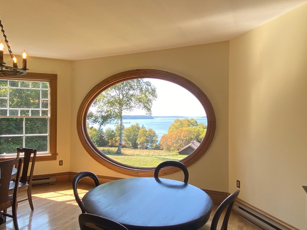 The living room on the Roosevelt summer house, and the rather impressive view from the dining area of their neighbour’s house