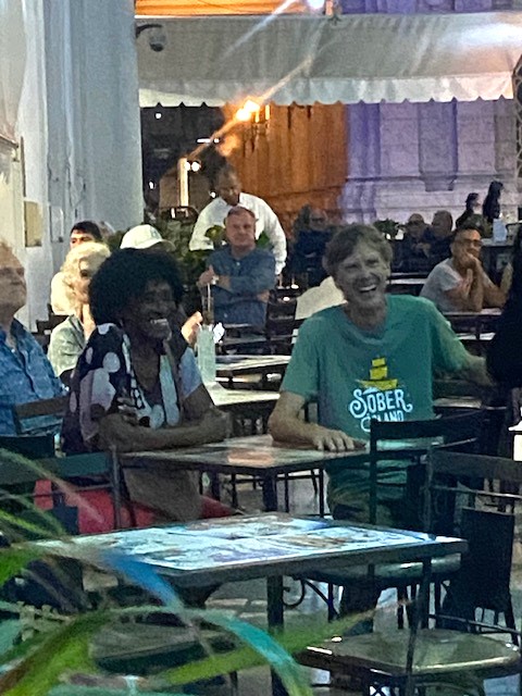 As we wandered outside we discovered that there was live singing in the street level outdoor seating area of Hotel Ingleterra. The man performing had a magnificent voice and he drew quite the crowd standing around in the street to listen to him. We struck up a conversation with a local woman standing next to us and she told us (well she told Marianna who then translated for us) that she goes there every Tuesday night to listen to this guy sing. Phil decided that he would take her into the seated area and buy her a drink so she could actually sit down and enjoy the performance. So off they went, and he led her to a table where they took their seats. The singer recognised his regular fan, and came over to serenade her. She was absolutely delighted. Phil however was disappointed and a little embarrassed when he discovered he couldn’t buy a drink because this hotel (like many others) does not accept cash and our credit card didn’t work in Cuba. So that was the end of his good deed but our Cuban friend was very happy nonetheless.