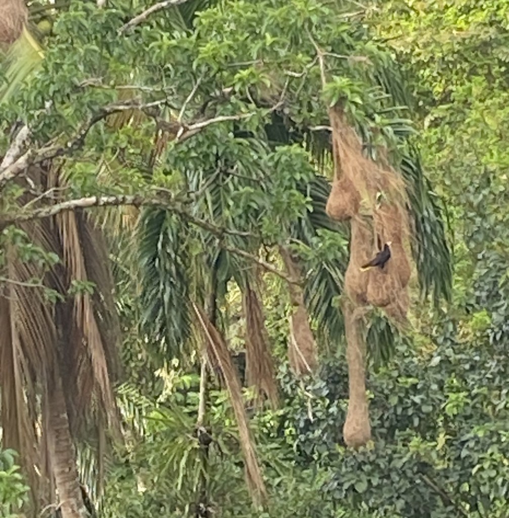 A Montezuma Oropendola outside its amazing hanging nest in Portobello