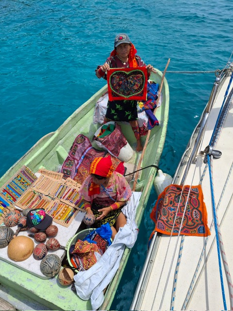 While Guna Yala is officially part of Panama, it is ruled autonomously by the Guna general elected congresso. Coconuts, fish and some tourism (and the associated handcrafts) are the main source of income, although we got the impression that some Kuna may work outside the community at times. No Guna is allowed to marry a non-Guna, which is not particularly good for genetic robustness as there are only about 55,000 of them. Apparently, theirs is one of the best preserved cultures in the Americas. There are lots of other interesting features of their society and culture but I’ll leave it to Google or AI if you want to know more.