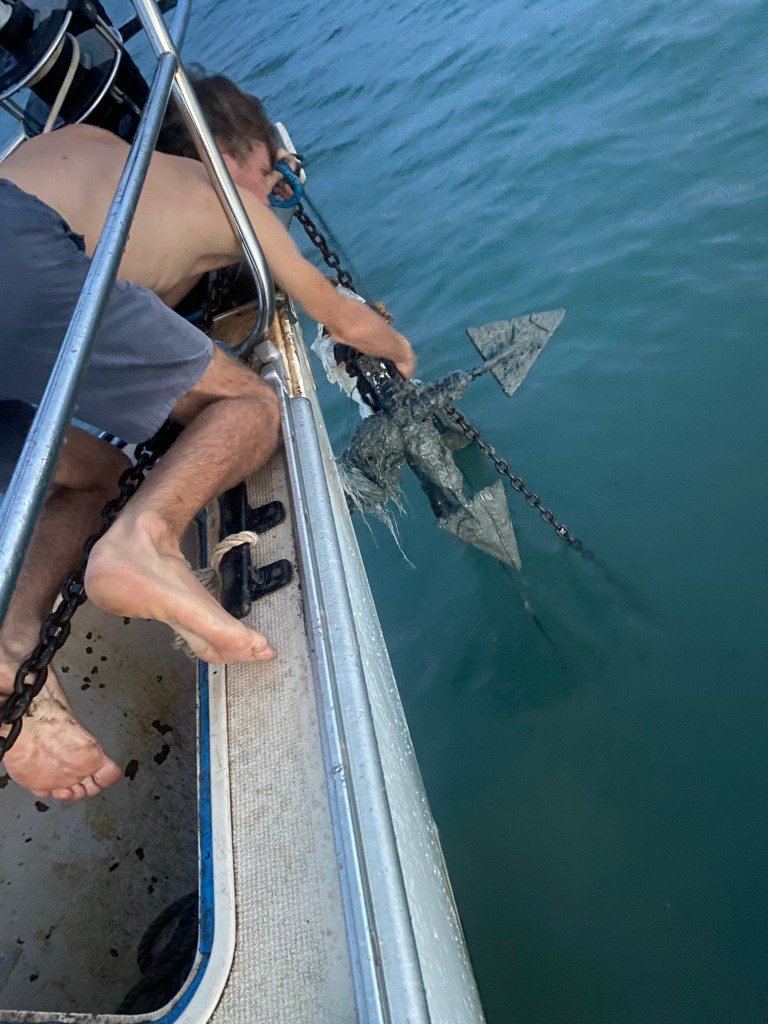 What a job it was to unhook our anchor from another old one we had managed to get hooked up with