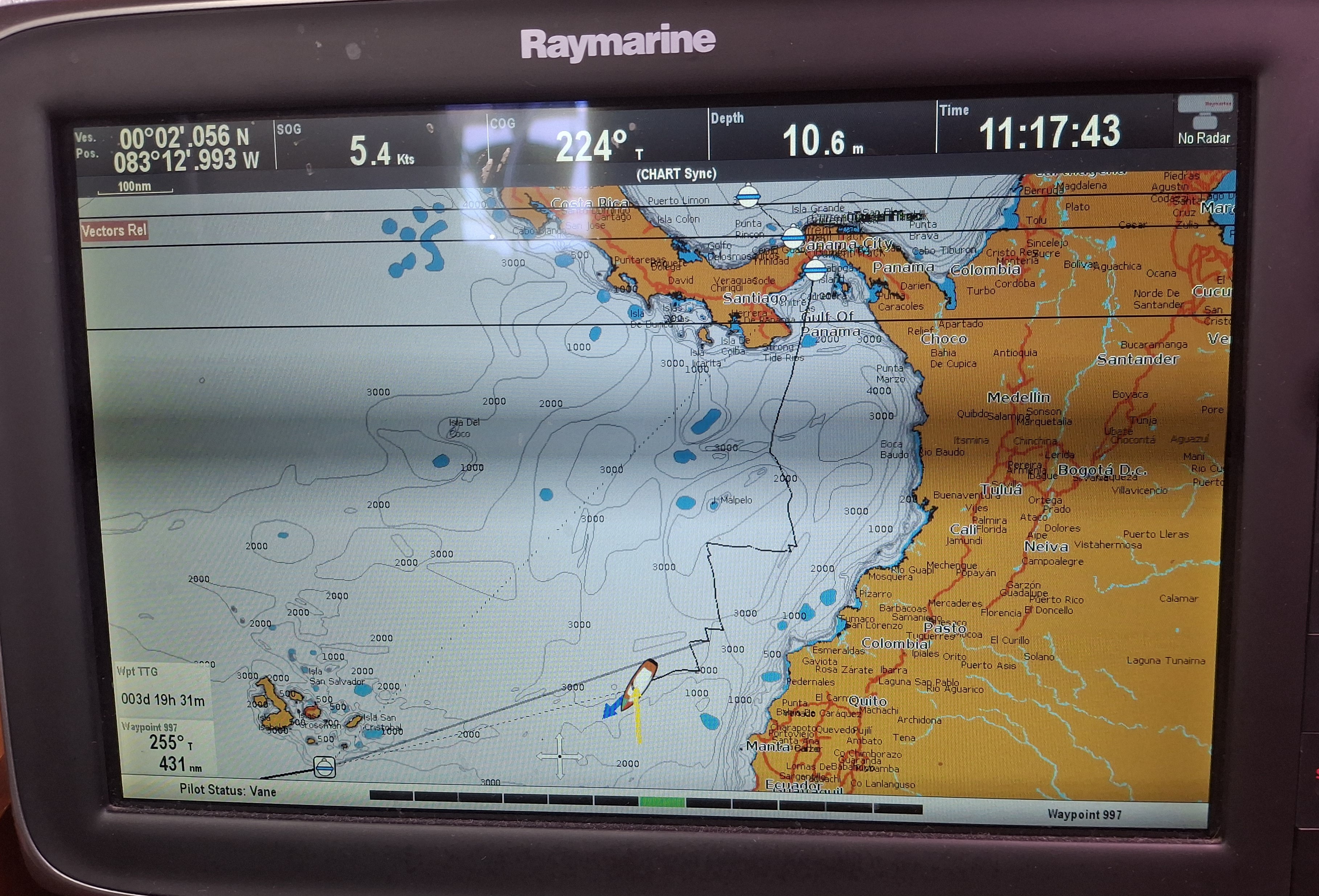 By day 7, we had finally got far enough south that we could turn towards our waypoint to the south of Galapagos. What a morale booster that was as it would be unlikely that we would need to tack again.