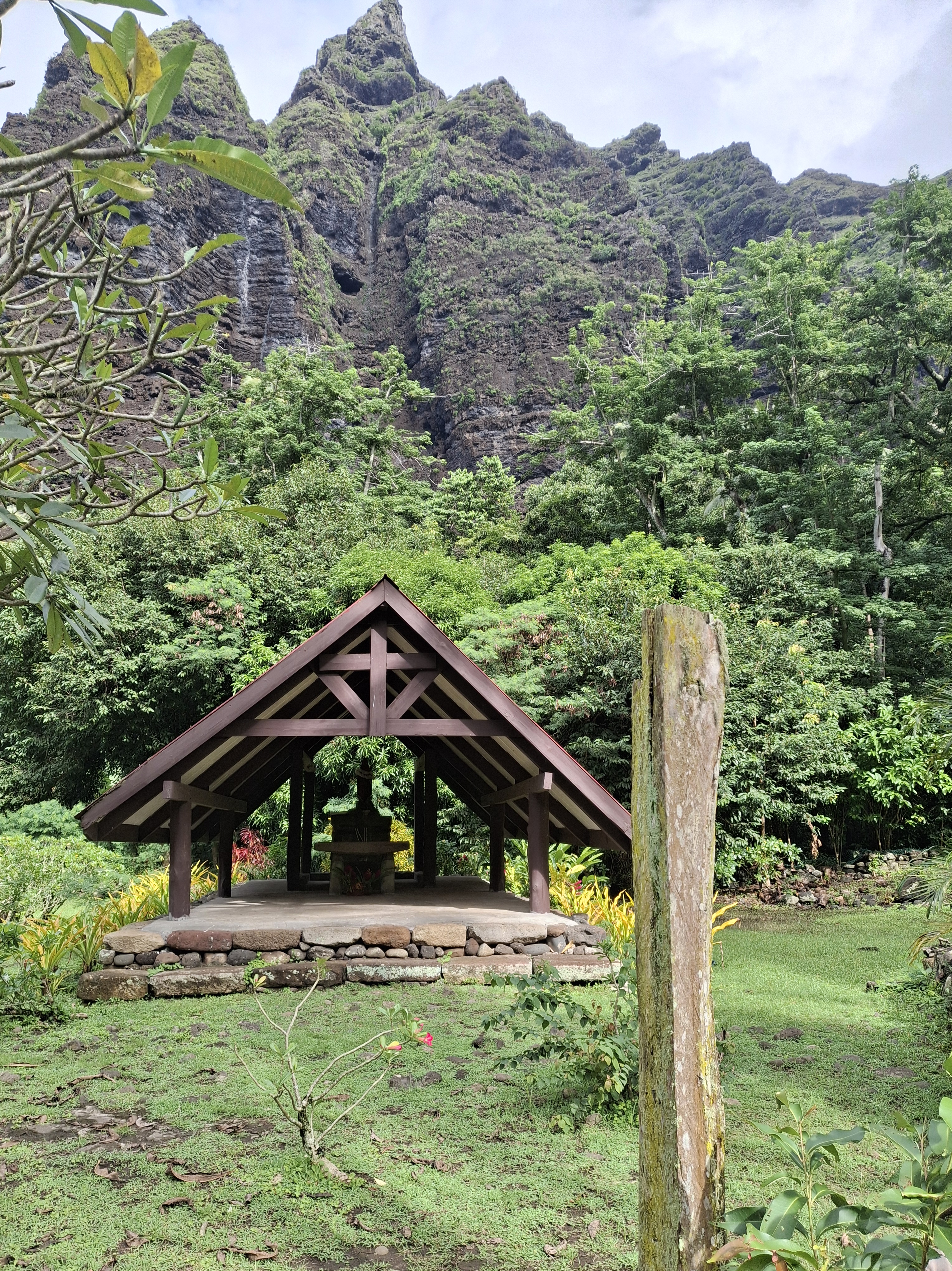 The churches come in all sizes! The one on the right overlooks the remains of a traditional me’ae- an interesting juxtaposition