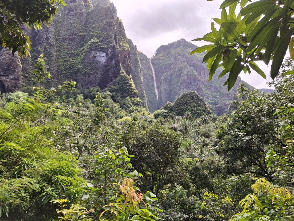 The main attraction here is a gorgeous walk to the Vaipo Waterall, reputedly tallest waterfall in the Marquesas. I’ll let the photos do the talking. There is a family in the village who provide a legendary lunch for returning walkers who order ahead. We had planned to make that my birthday celebration but wouldn’t you know their “restaurant” was closed that day as the owner had gone to “town”.