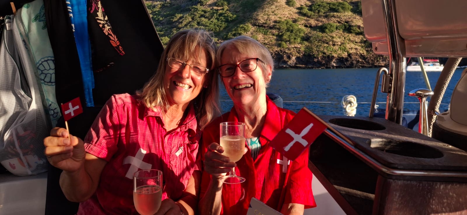Enjoying Swiss National Day on board “Shiva” with Brigitte and Hanspeter