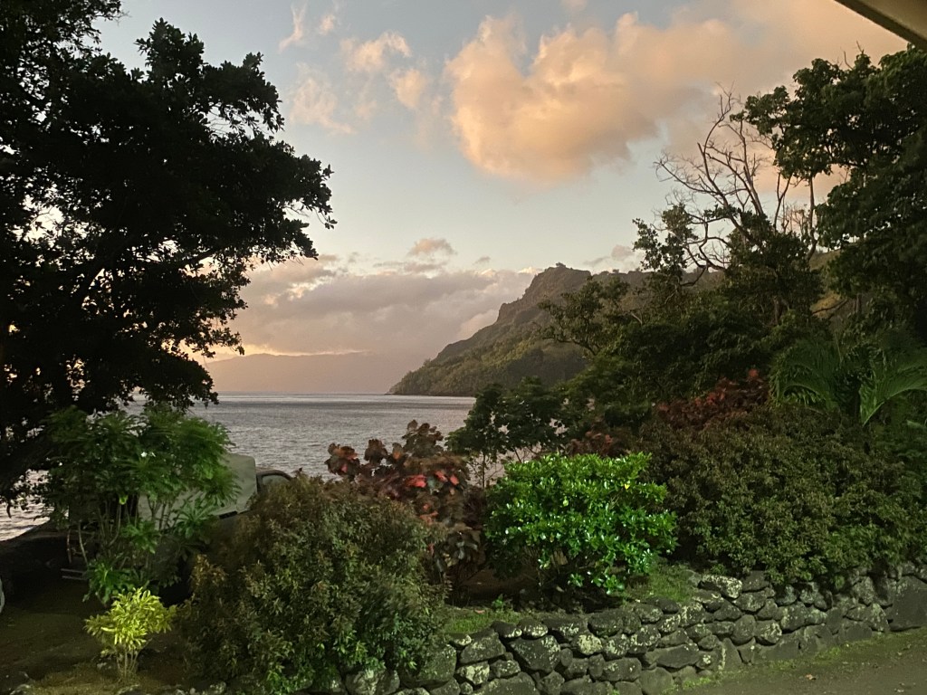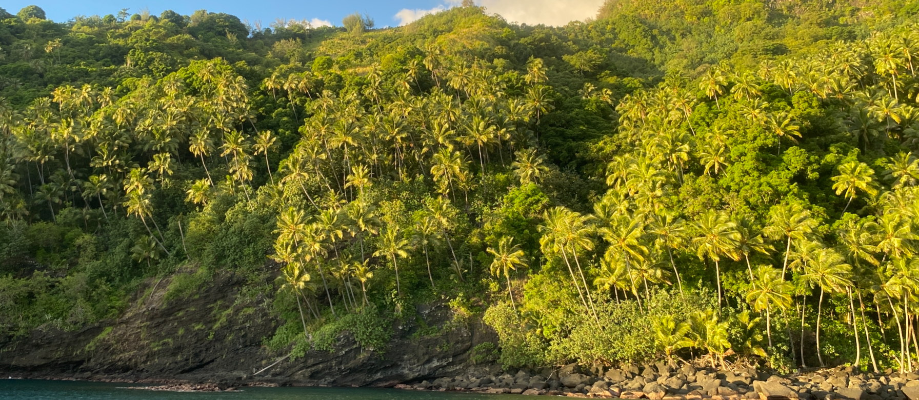 The boat rocks gently as the palm trees sway in the breeze and catch the last of the sun’s rays. The dolphins do their final cruise around the bay before disappearing for the evening. Another day in a near perfect anchorage on Tahuata comes to a close.
