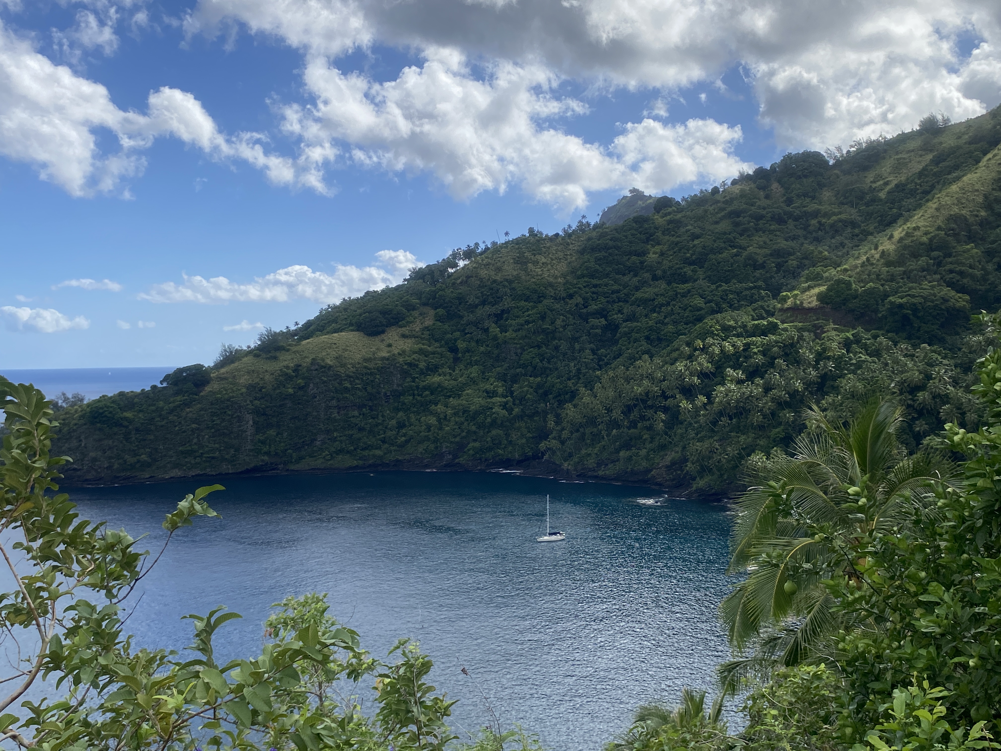 We spent some time with them in a few different anchorages on Nuka Hiva, our favourite being Anaho Bay. It’s a protected bay with a small village, and some nice walks. There are even some vegetables available from one of the locals who has a farm there. The down side is the plentiful no-see-ums. Sadly we said goodbye to Sven and Marina who left for the Tuomotus, and beyond. Another farewell but we are likely to see Sven again in Australia as he has a son who lives there.
