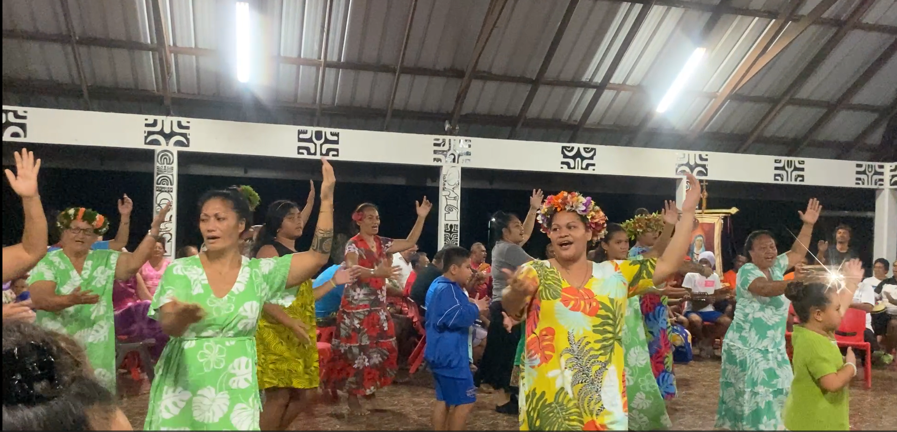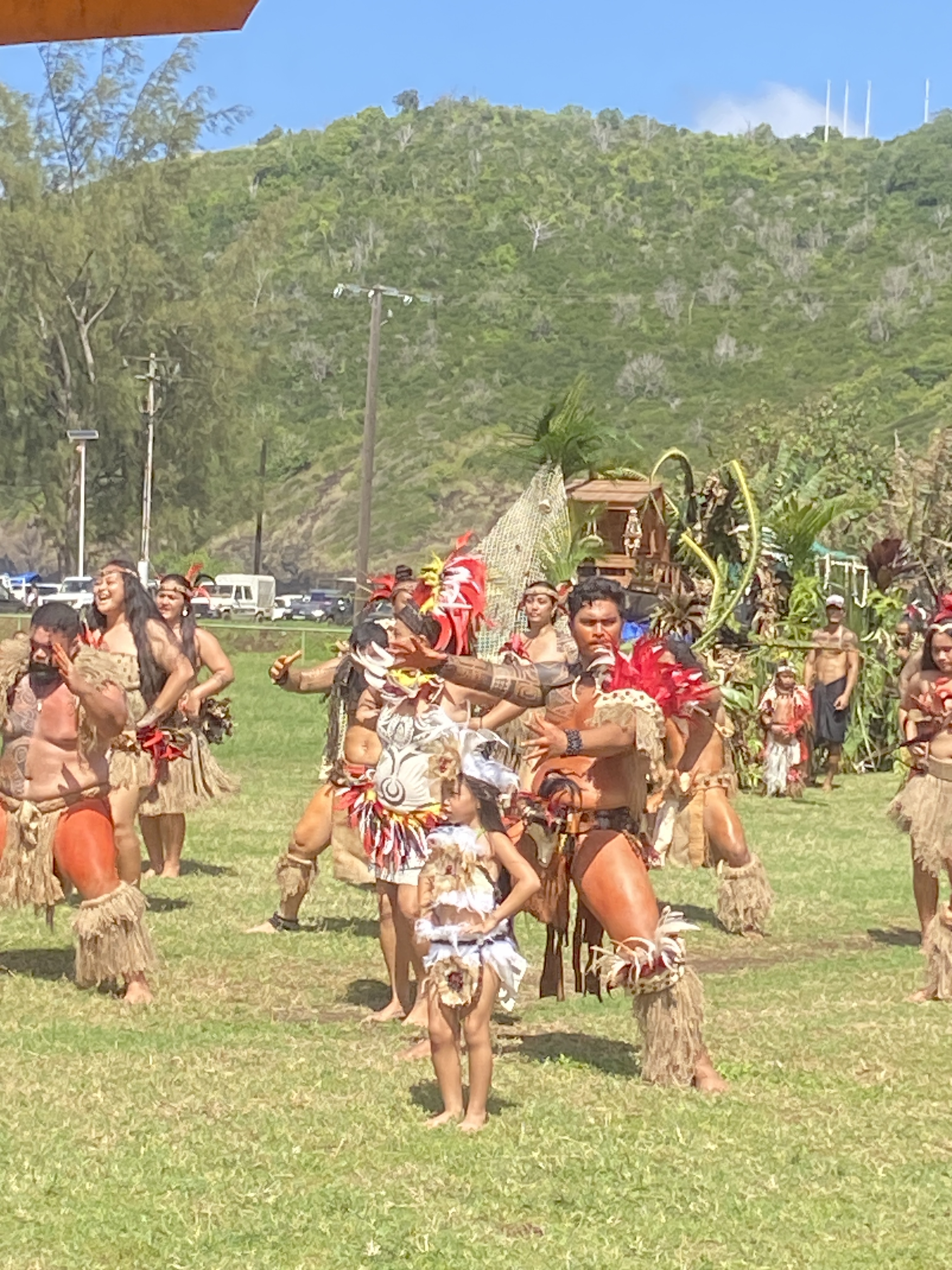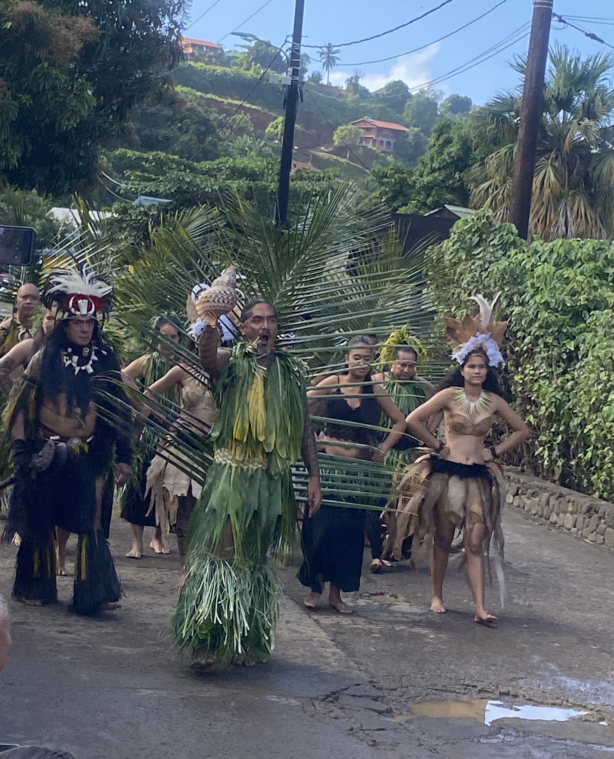 We were lucky to witness a couple of special cultural events. The first of these was in Hapatoni, a gorgeous little village. There are four main communities living in different valleys on Tahuata, and once a year each community hosts the other three communities for several days of celebrations which seem to have a mostly religious theme. It so happened that it was Hapatoni’s turn while we were anchored nearby. We spent a delightful evening ashore at the final event which included singing, dancing and some short performances. We felt privileged to be made welcome at a true community event that was not a show for tourists. Everybody was involved from the little children to the senior members, and there was much joy and laughter.